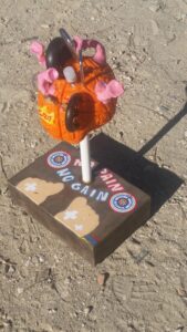 Treball d’una línia poc convencional i creativa. Al final de la missa un dels motards va explicar als assistents les diferents parts i el seu significat. De color viu es presenta el cervell que es veu afectat pel virus i en ell hi ha Nadal un llum d’esperança. Un rellotge marca el temps i no hi pot faltar la referència a les motos.