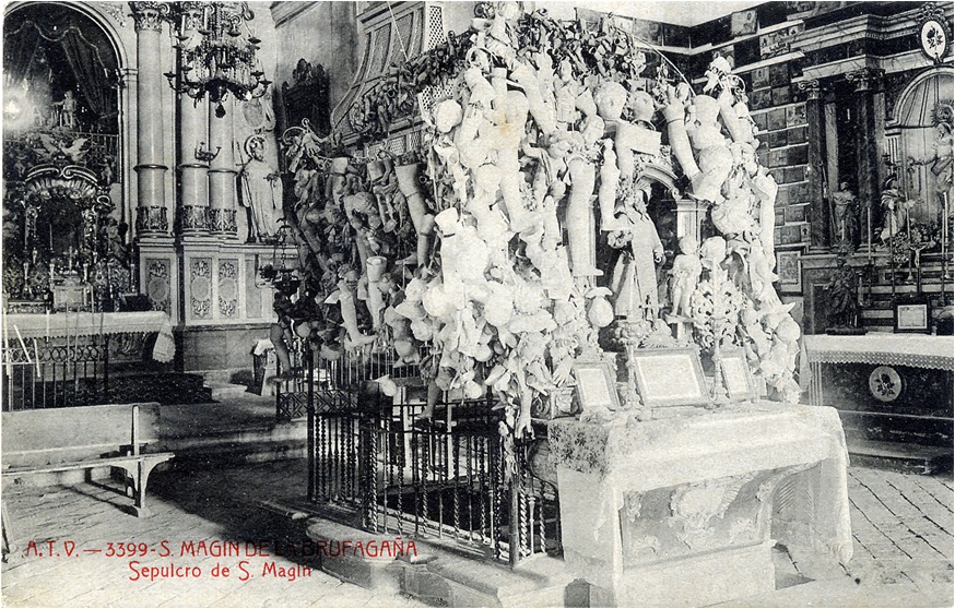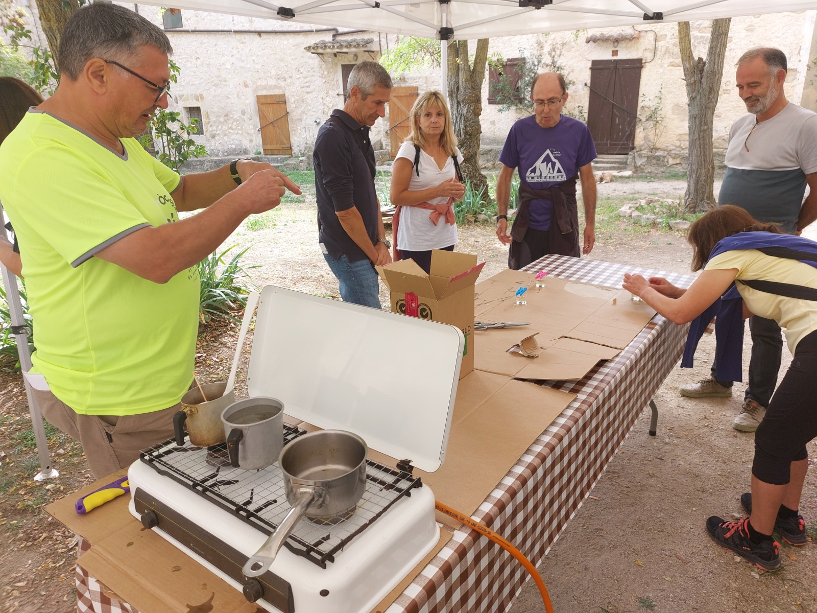 Després arriben grups familiars, pares i nens que venen a participar en les Jornades Europees del Patrimoni (JEP). Comença la visita guiada amb la ubicació del conjunt maginenc: Santuari, Coves i Fonts. Cada any per les Jornades, presentem una visió diferent de Sant Magí i enguany ens hem centrat en els oficis de dauradors i candelers. El títol de la jornada “Dauradors i Candelers què hi feien a Sant Magí ?” ja ho diu tot. Sempre amb la idea d’apropar amb tots els sentits el que volem explicar, la tasca del matí era : Ubicació, visita, audiovisual i tallers/tastets.