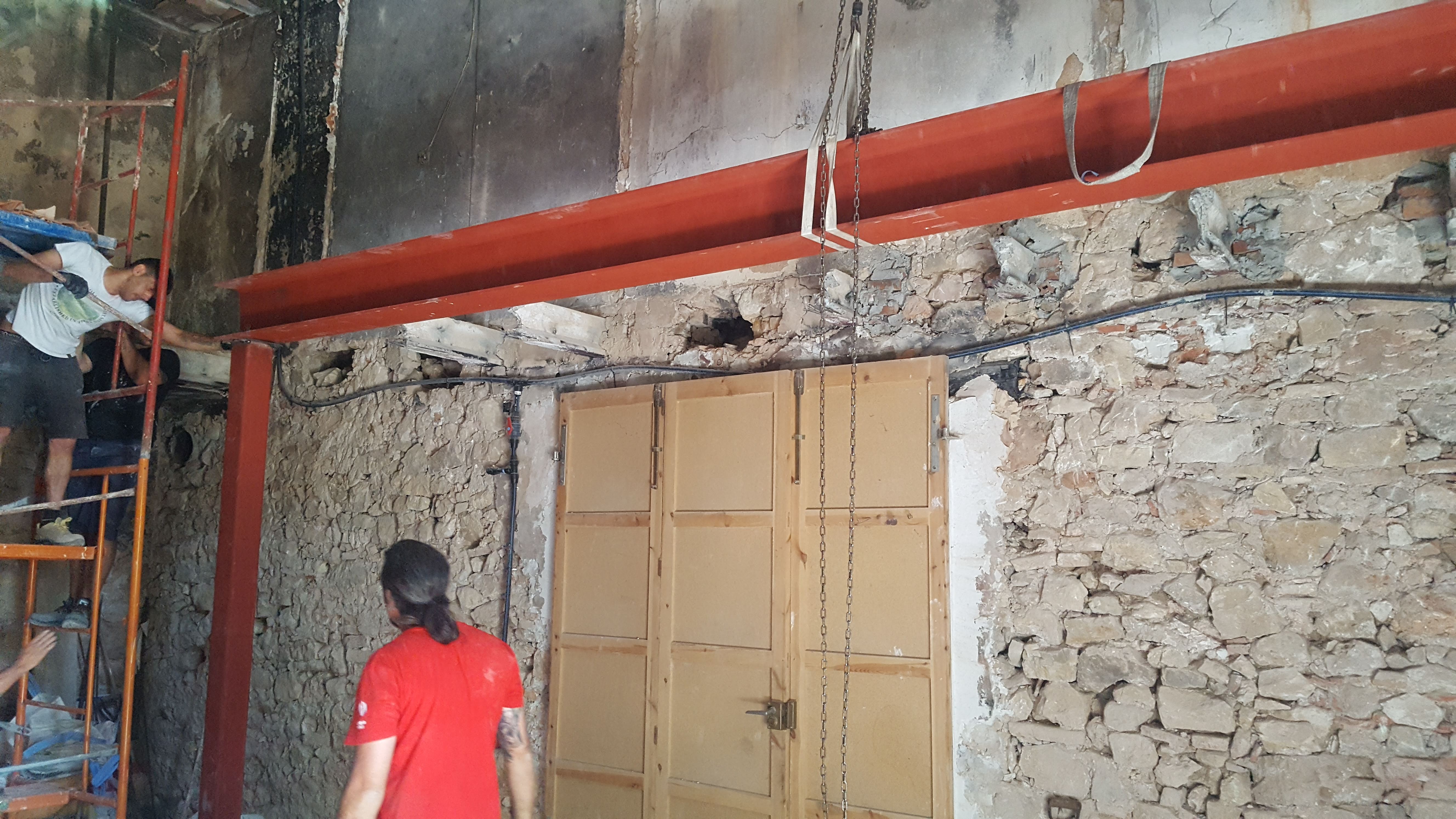 L’any 2022 es va treballar en les instal·lacions d’aigua i electricitat de tot l’edifici, col·locació de pladur de la segona planta, construcció de les escales al primer i segon pis, etc…