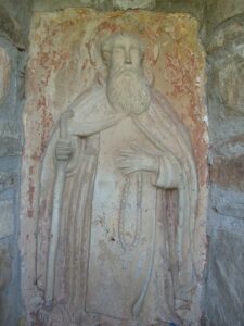 Al observar aquesta capelleta hi veurem una imatge en relleu sobre una llosa, en un posat podríem dir-ne clàssic: expressió amable (de bondat), barba, hàbit de monjo, fent brollar l’aigua amb el gaiato, amb rosari… (el fet de dur rosari, fa suposar que la imatge va ser esculpida després o en època dels dominics, ja que ells foren els impulsors del res del rosari –segle XIII-), no hi ha la palma, símbol del martiri.