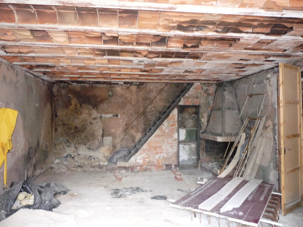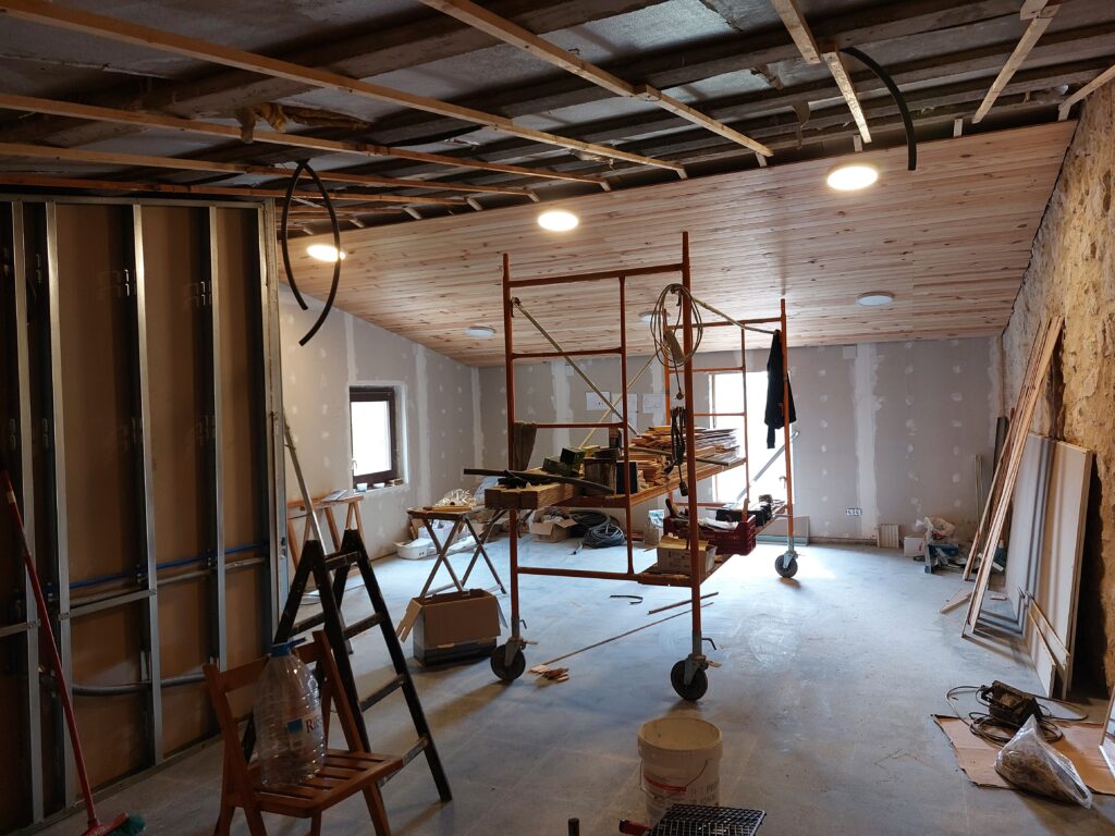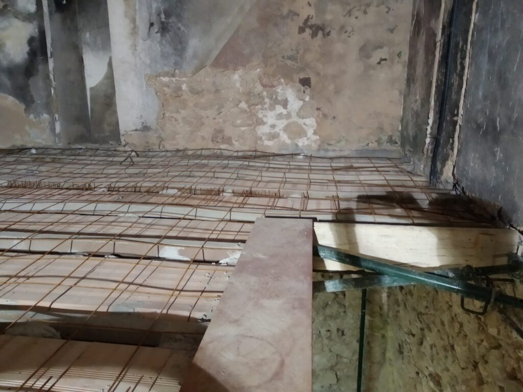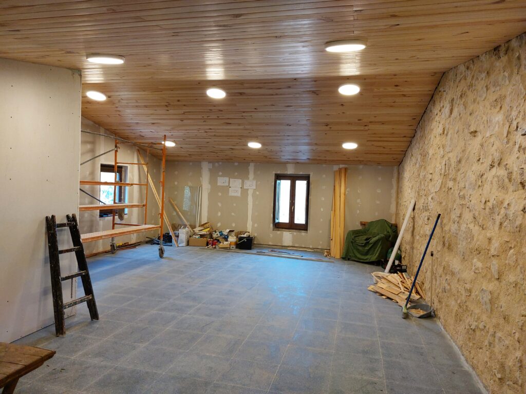Juliol de 2023. La segona planta, enrajolada i amb l’enfustat del sostre a mig fer. A l’esquerra hi ha la sala tècnica.