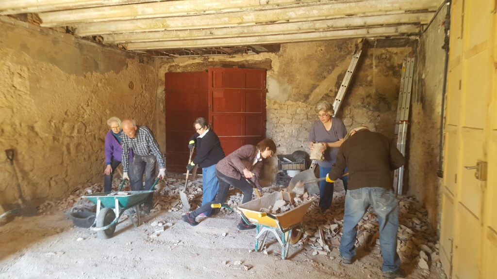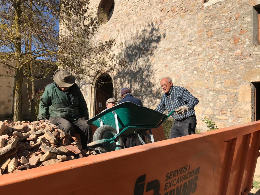 2009. La planta baixa destruïda per un incendi des de fa molts anys.2019. Inici de les obres de reconstrucció refent el paviment.20192019. Voluntàries i voluntaris traient la runa.2019. Carregant la runa al contenidor.2019. Es va haver de refer totalment el sostre.2019. Instal·lant una biga mestra.2019. El sostre de la planta baixa refet.2019. Reforçant el sol de la segona planta.2021. Construcció de part de la segona planta.2021. Pujant les parets de la segona planta.2021. Pujant les parets de la segona planta.202120212021. La façana a punt d’acabar.2021. La teulada a punt d’acabar.2021. L’exterior de la Casa de l’Ermità acabada.2022. Segona planta amb el pladur posat2022. Segona planta.2022. La primera planta en obres.2022. Escala de la planta baixa a la primera planta.