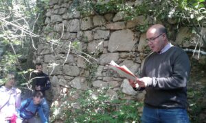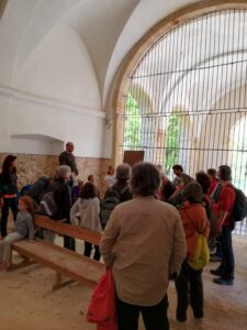 S’inicia la visita guiada al Santuari de la mà de Josep Carreras, bon coneixedor de la història de Sant Magí, del pas del dominics i de les diferents peripècies que ha viscut el Monestir en els diferents temps. Ens mostra els llocs que existeixen i els que perduren a la memòria i a les documentacions. La cisterna del Santuari, les làpides…