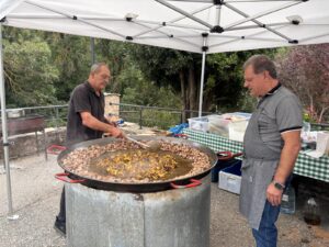 Arriba l’hora de dinar i tothom a taula: Arrosada, amanida i postres van omplir les expectatives de la gent. Aquí es va veure la col·laboració dels Amics de S. Magí en l’organització, tant del dinar, com abans, en l’esmorzar de graella i el servei de begudes al llarg del matí.